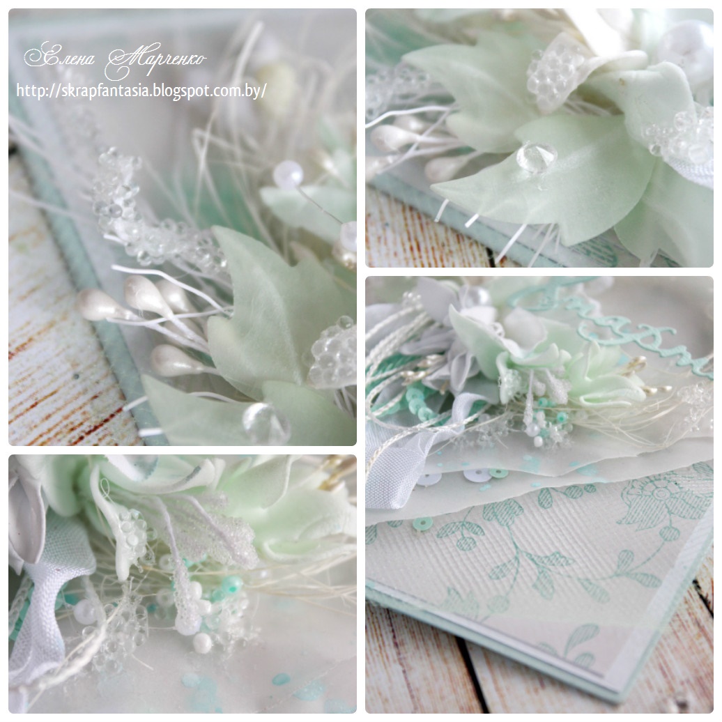 А еще весна - начало свадебных сезонов. И у меня сложилась вот такая необычная открытка в очень свежей весенней палитре - подарок на свадьбу.