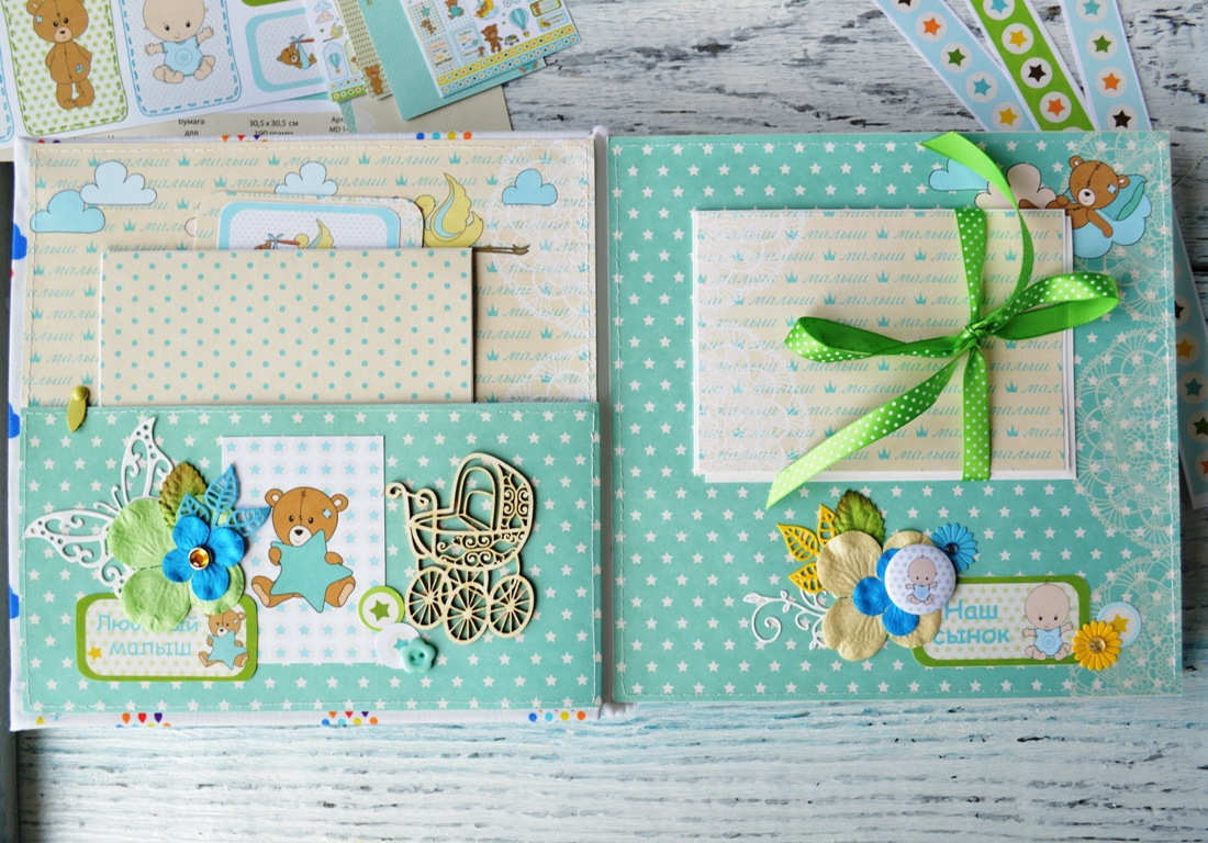 А однажды на вечернем чаепитии я продемонстрировала свой детский альбом одной своей подруге, так в итоге она не просто захотела подобную вещь себе, а даже принять непосредственное участие в его создании!))