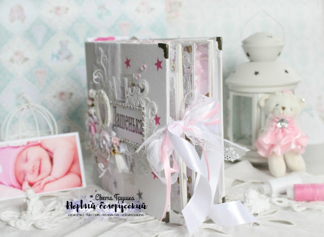 УдалитьНевероятно красиво и нежно! Идея, с использования стразовой цепочки в детском альбоме, очень рисковала, но результат оправдывает!!! Ещё обратила внимание на то какой 😍😍😍 чипборд! Сурен альбом! Умничка!